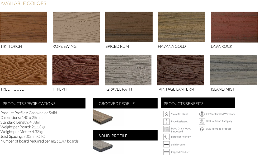 High performance, premium decking engineered with unrivalled fade, stain, scratch and mould resistance, created with hassle-free maintenance in mind for minimal down time from enjoying your outdoor spaces. Transcend is the leading Bespoke Decking product line.